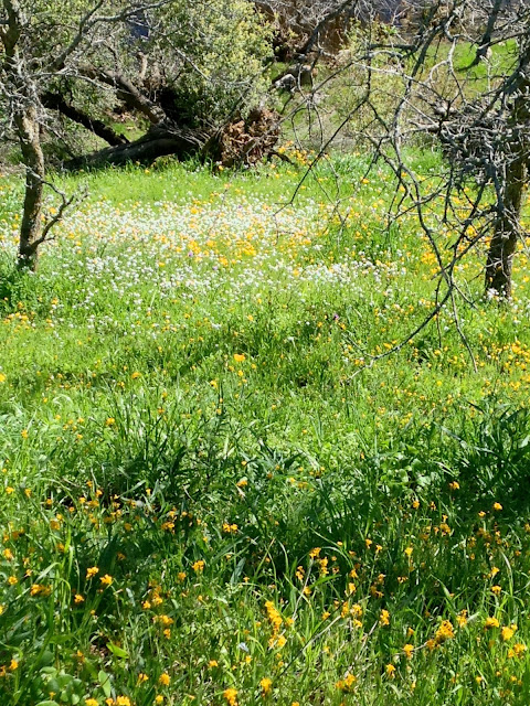 Heading east on the valley floor, we passed blooming almond orchards carpeted in white and fields of mustard and fiddleneck.