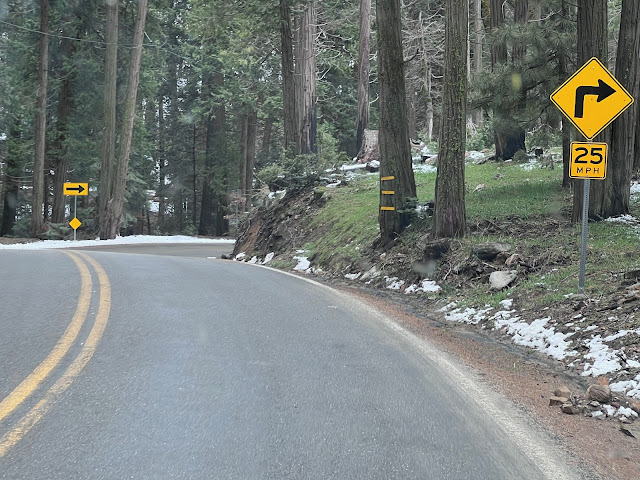 For 54 miles up, down, and around, from Lake Isabella through Wofford Heights, Alta Sierra, Glenville, and Woody to the intersection with 65, there must have been at least 100 road signs for curves, corners, speeds, hairpins, and zigzags.