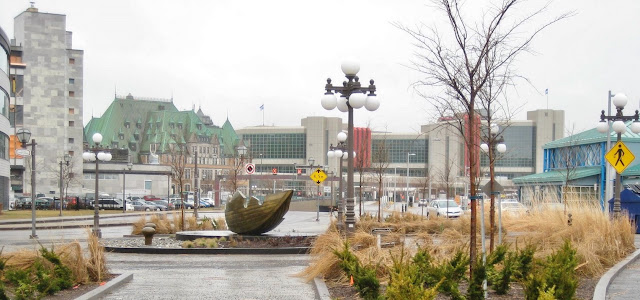 Continuing down Côte de la Montagne, we arrived at Place des Canotiers (Sailors Square), built next to Quebec City's original port, and today a public square, shops, and the cruise ship terminal.